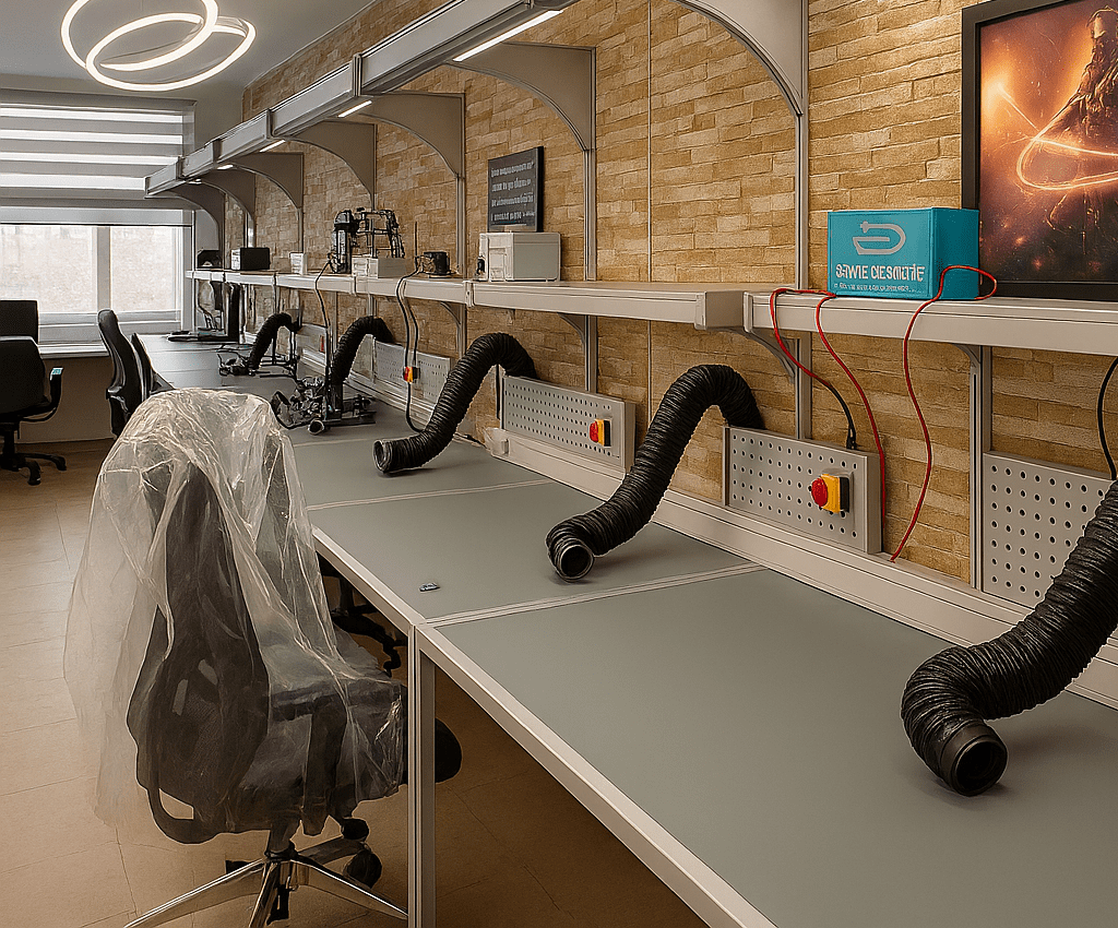 💡 روشنایی سراسری با نور آفتابی لاینر LED با توان ۹۰ وات، نصب‌شده در بخش فوقانی میز، تأمین‌کننده نور یکنواخت و طبیعی برای افزایش دقت و کاهش خستگی چشم.